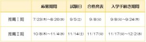 入試スケジュール